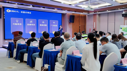 公司产品总监郑晓麟进行了充满感染力且极具思辨体会《视频时代的流量产品布局》主题报告。郑晓麟展示了如何从短视频视角精准把握客户心声与价值导向的无限可能。报告立足国内外市场分析,所及既有行业宏观趋势和数字化转型的推动力,又包括短视频操作策略、细节技巧等微观体系实施方法。同时议及企友通慧抖销、慧投放、慧拓客、慧秒脉等一整套短视频生态布局以及外贸环节升级版——慧出海、慧外收等产品。他表示,“全球科技巨头积极布局短视频平台,迅速崛起成为不可忽视的信息获取及社交阵地。因此,企友通代理商需要把握短视频营销风口,借助企友通大盘下大棋,从而在市场竞争中取得制胜。”